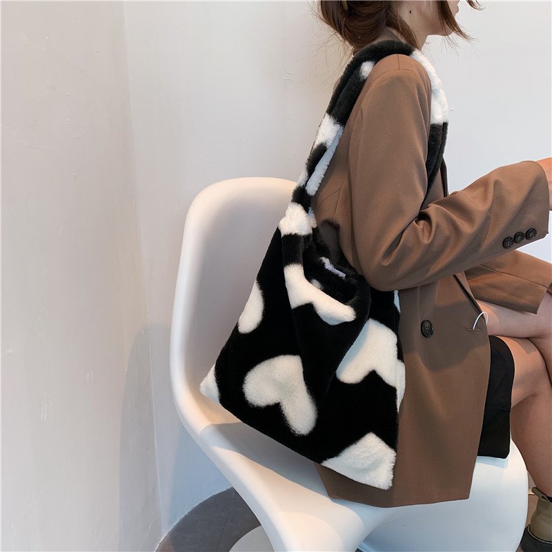 Love Heart Shoulder Bags Winter Plush Shopping Bags For Women